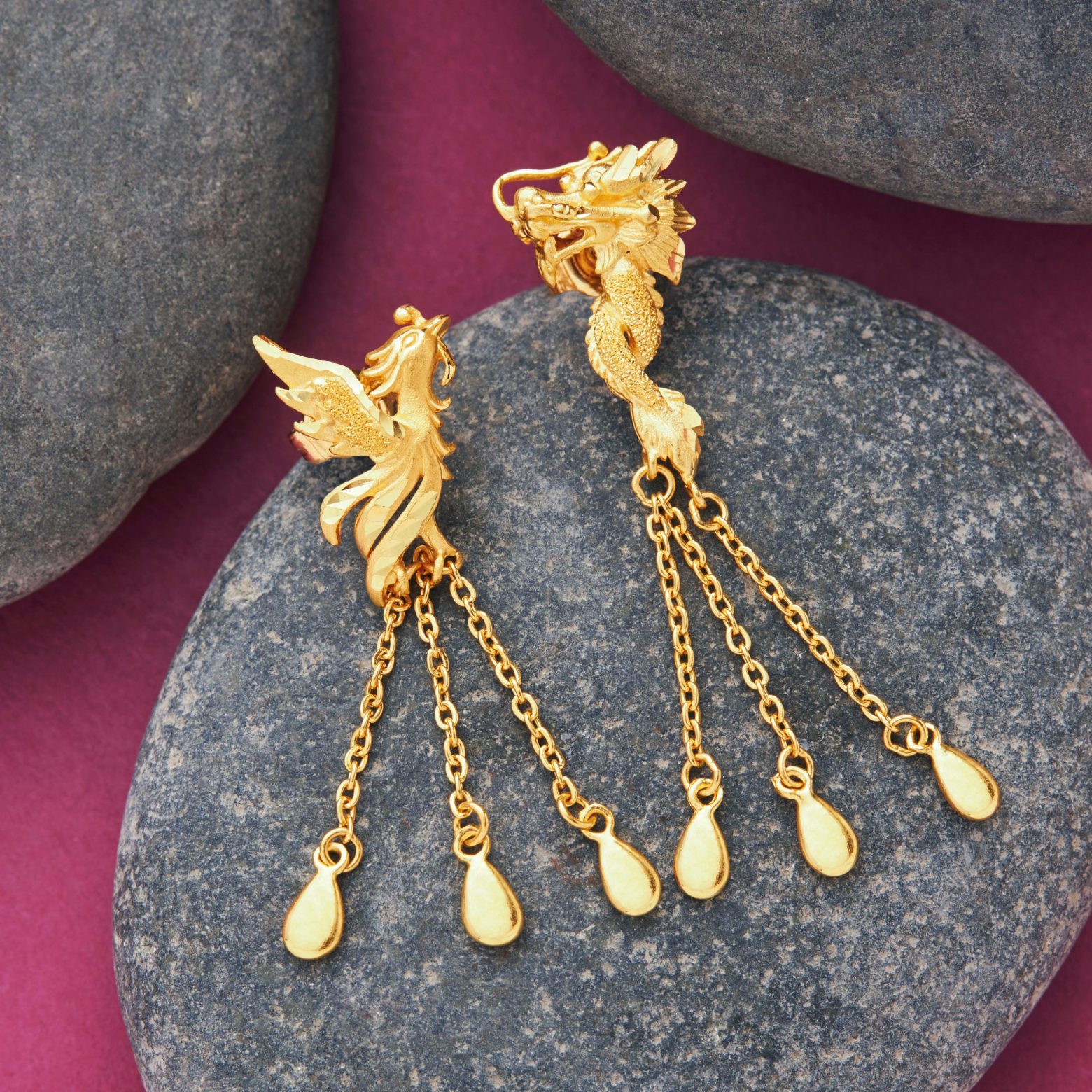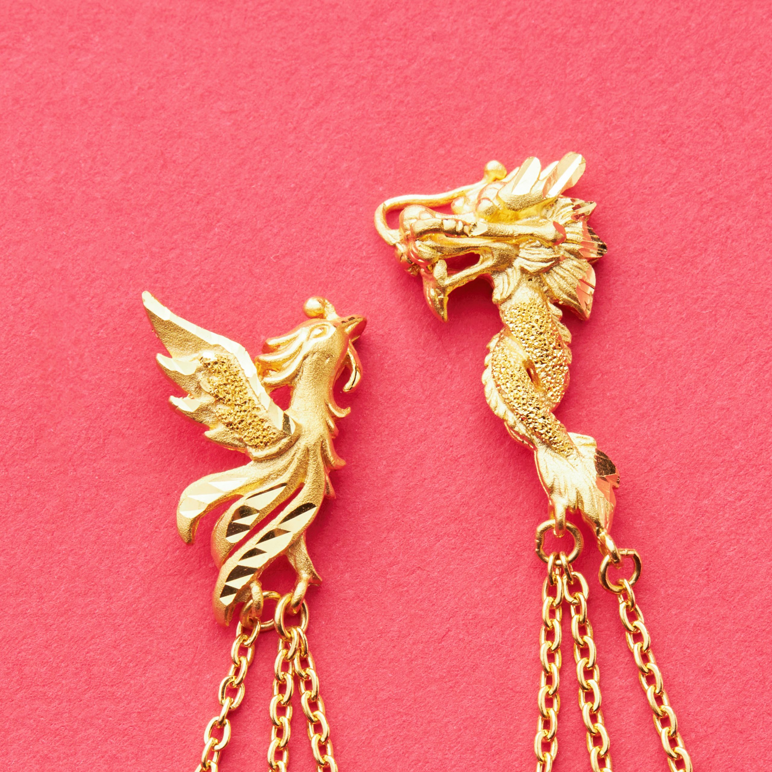 足金龍鳳耳環